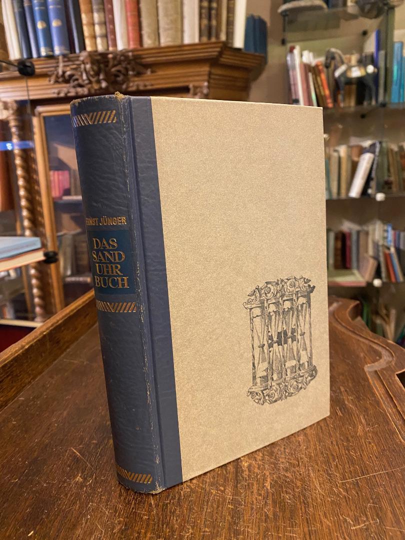 Jünger, Ernst: Das Sanduhrbuch. (Lizenzausgabe mit Genehmigung des Verlag Vittorio Klostermann, Frankfurt/M), Berlin und Darmstadt, Deutsche Buch-Gemeinschaft, 1957. 8° (21x13), 261, (3) S., mit 47 Abb. auf 33 Bildtafeln und 58 Darstellungen im Textteil, OHldr, Lesebändchen, Leder an den Kapitalen gering berieben, sauber und wohlerhalten, [Des Coudres/Mühleisen (1985), B 29 c].–