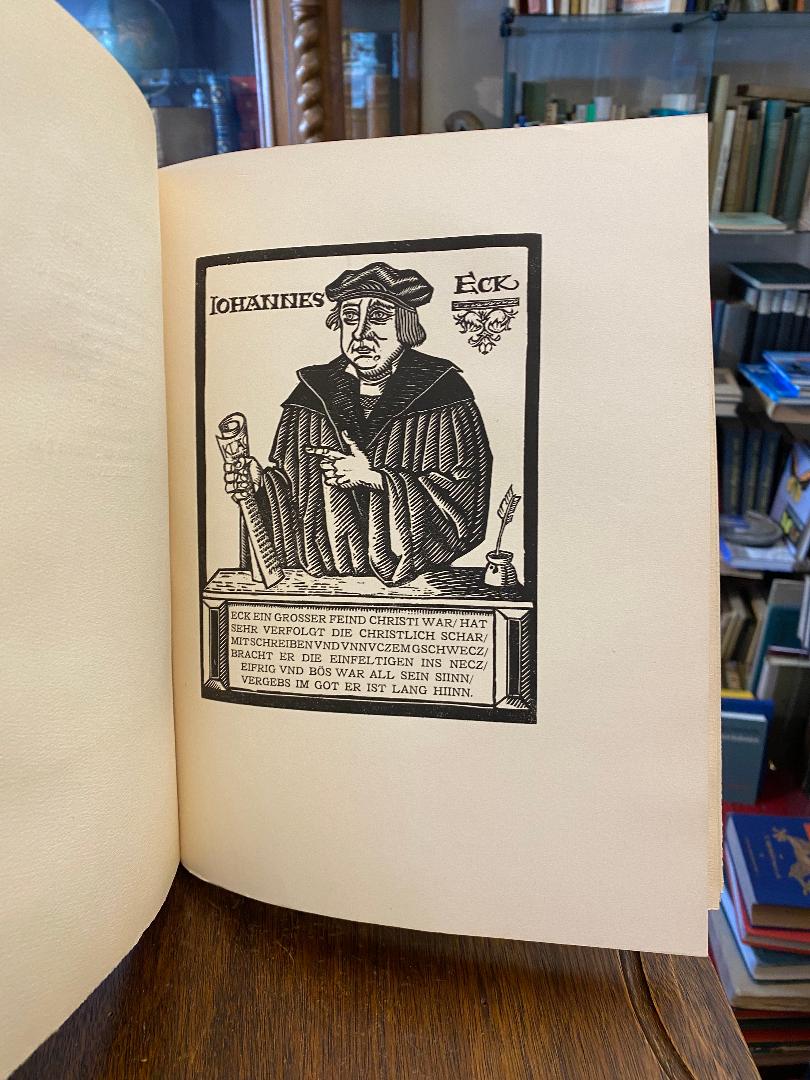 Lemnius, Simon. – Vorberg, [Gaston] (Hrsg) / Wirsching, Otto (Ill): Simon Lemnius : Monachopornomachia – Der Mönchshurenkrieg / Threni – Klaggesang / Von der Sardoa. München, Georg Müller Verlag, (1919). 4° (30x23), 111, (1) S., rot-schwarz Titel, rote Initialen, 3 ganzseitige Holzschnitte, OHPgmt auf Pgtstreifen mit Pgmt-Ecken, figürliches goldDeckelmedaillon, goldRückenTitel, KopfgoldSchnitt, schönes sauberes und gepflegtes Exemplar, [Hayn/Gotendorf, Bibliotheca Germanorum Erotica & Curiosa; IX,345].–