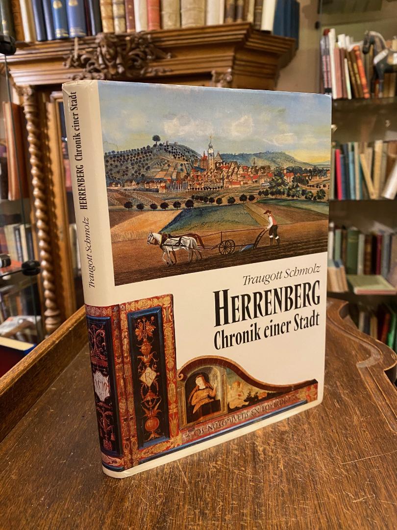Herrenberg. – Schmolz, Traugott: Herrenberg – Chronik einer Stadt : Von den Anfängen bis zum Jahre 1975. Herrenberg, Stadt / Stadtarchiv Herrenberg, 1987. 4° (25x18) 179 S., mit zahlr. dokumentarischen Abb., OPbd mit ill OU, kaum gelesen, schönes Exemplar, [= Herrenberger historische Schriften; 1], chronologische Darstellung der Geschichte Herrenbergs mit umfangreichem Bildteil.–