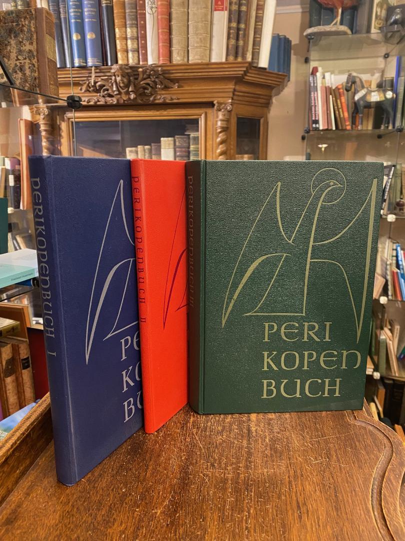 Perikopenbuch für die Meßfeier an Wochentagen [Wochentage in drei Bänden]: BAND I. Vom ersten Adventsonntag bis zum Samstag nach dem ersten Passionssonntag.– BAND II: Von Ostern bis zum Dreifaltigkeitsfest.– BAND III: Vom Dreifaltigkeitsfest bis zum Samstag nach dem letzten Sonntag nach Pfingsten.– Im Auftrag der Bischofskonferenzen Deutschlands, Österreichs und der Schweiz herausgegeben von den liturgischen Instituten in Trier, Salzburg und Freiburg in der Schweiz. 3 Bände in 3 (alles), Einsiedeln und Köln, Benziger / Freiburg und Basel, Herder, Wien, Herder / Salzburg, St. Peter, 1966. 4° (26x18), (VIII), 260; (VIII), 98; (VIII), 519 S., grauer OKldr mit Prägung, je 2 Lesebändchen, Stempel auf Vorsatz, nahezu ungenutzt, schöne gepflegte Exemplare, [= Lektionar I : herausgegeben im Auftrag der Bischofskonferenzen Deutschlands, Österreichs und der Schweiz und des Bischofs von Luxemburg], In der von Alfred Riedel gestalteten Adamas Antiqua.–