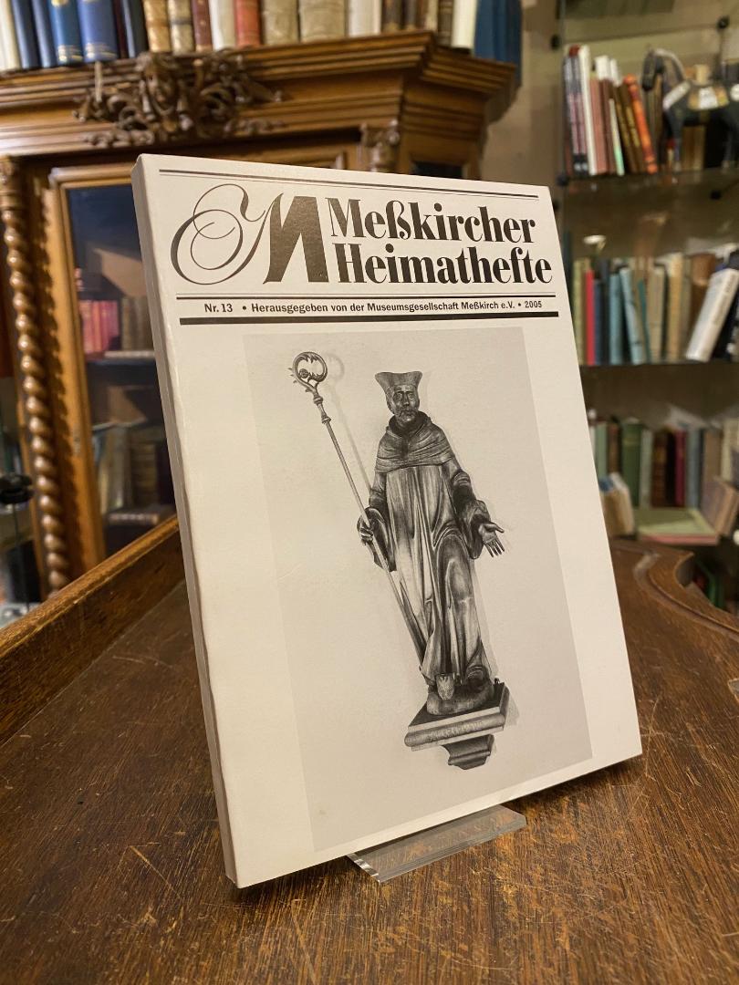 Meßkirch. – Museumsgesellschaft Meßkirch e. V. (Hrsg) / Heim, Armin (Red): Meßkircher Heimathefte : Nr. 13. Meßkirch, Museumsgesellschaft Meßkirch e. V., 2005. 8° (21x15), 227 S., mit Abb., ill OKart (Brosch), ohne Gebrauchsspuren, wohl ungelesen, enthält: Volker Trugenberger: Nach Stand und Herkommen – Heirats- und Standespolitik der Herren von Zimmern im 16. Jahrhundert anhand von Wappendarstellungen.– Armin Heim: Geistliche Würdenträger aus Meßkirch (Teil 1): Eberhard von Rohrdorf, Abt von Salem (1161-1245),Hermann von Meßkirch, Abt von St. Blasien (Amtszeit 1204-1222), Ita von Rohrdorf, Äbtissin von Wald (gen. 1270-1272), Agatha von Rohrdorf, Äbtissin von Wald (gen. 1344-1368), Katharina von Heudorf, Äbtissin von Wald (gen. 1349-1397), Katharina von Zimmern, Fürstäbtissin von Zürich (1478-1547), Dr. Michael Dornvogel, Weihbischof in Augsburg (1518-1589), Sebastian Haidlauf, Weihbischof in Freising (1539-1580), Ursula Steinhofer, Äbtissin von Baindt (Amtszeit 1588-1595).– Armin Heim: Maria Theresia von Arenberg (1639-1705) : Meßkirchs bedeutendste Herrin.– Armin Heim: Chemiker, Botaniker, Mineraloge : Zum 175. Todestag von Franz Ignaz Menzinger (1745-1830).– Holger Zaborowski: ‚Das Heute hat seine Herkunft im Gewesenen‘ : Die religiöse und theologische Entwicklung des jungen Martin Heidegger.– Alfred Denker: Martin Heidegger und Konstanz : (Bausteine zur Biographie Martin Heideggers, 6. Teil).– Werner Fischer: Missa – Messe – Messo? : Eine notwendige Klarstellung.– Werner Fischer: Marstall – Magazin – Notkirche : Die wechselvolle Geschichte des Herz-Jesu-Heims.– Werner Fischer: Der Meßkircher Weihnachtsmarkt 1905.– Werner Fischer: Vor hundert Jahren starb Bürgermeister Carl Hauser.– Alfred Th. Heim: Populärer Priester und geistlicher Literat : Zum hundertsten Geburtstag von Albert Krautheimer (1905-1966).– Alfred Th. Heim: Der Fliegerangriff auf Meßkirch am 22. Februar 1945.– Alfred Th. Heim: Erinnerungen an das Kriegsende 1945 : Wie ich als Zwölfjähriger das Ende der Hitlerzeit und den Einmarsch der Franzosen erlebte.– Falko Hahn: Museumszehner : Ein Geburtstagsständchen.– Werner Fischer: In alten Zeitungen geblättert… Meßkirch vor hundert Jahren.– Armin Heim: Die heimatkundlichen Exkursionen der Museumsgesellschaft 2005.– Armin Heim: Meßkirch-Bibliographie : Nachträge und Neuerscheinungen 2004/2005.–