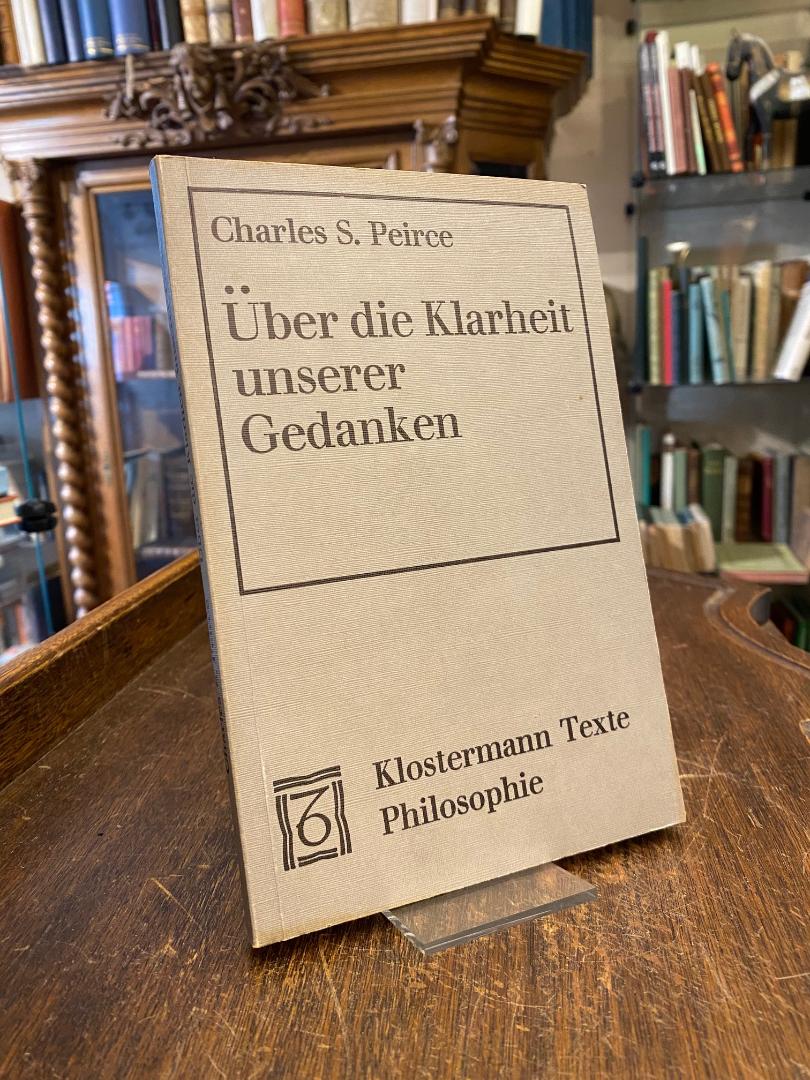 Peirce, Charles S.: Über die Klarheit unserer Gedanken – How to Make Our Ideas Clear : Einleitung, Übersetzung, Kommentar von Klaus Oehler. 3. Aufl., Frankfurt/M, Vittorio Klostermann, 1985. 8° (21x14), 168 S., 2 Bl., OKart (Brosch), etwas angestaubt, sonst fest und sauber, Parallelausgabe englisch – deutsch.–