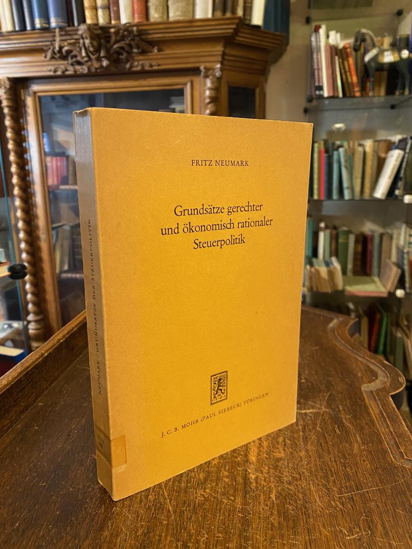 Neumark, Fritz: Grundsätze gerechter und ökonomisch rationaler Steuerpolitik. Tübingen, J.C.B. Mohr (Paul Siebeck), 1970. 8° (23x15), XX, 428 S., OKart (Brosch), Rückenetikett, kleiner Institutsstempel auf Titelei, fest und sauber,