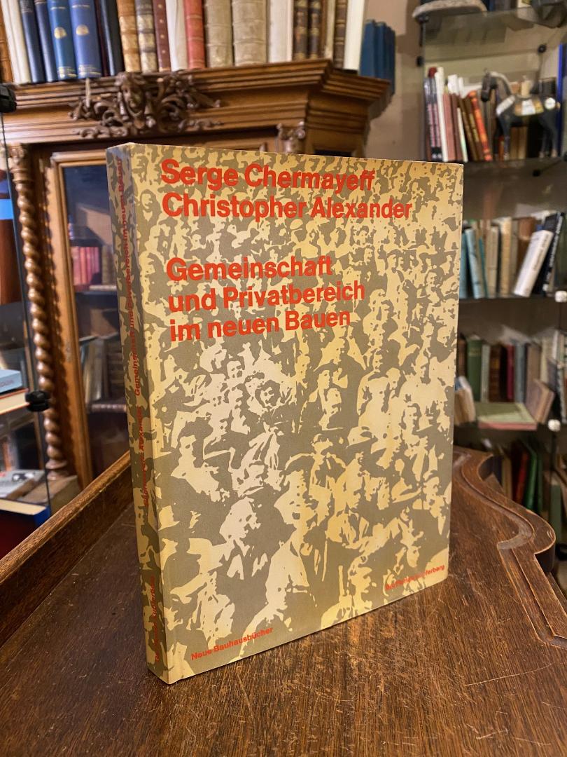 Chermayeff, Serge / Alexander, Christopher: Gemeinschaft und Privatbereich im neuen Bauen : Auf dem Wege zu einer humanen Architektur. Mit einem Vorwort von Kenneth Rexroth und einem Nachwort von H. M. Wingler. Mainz und Berlin, Bei Florian Kupferberg, [1971]. 4° (26x19), 210 S., 1 Bl., mit 88 Grundrissen, graph. Darst. und Illustrationen, Oln mit ill OU, Umschlag lichtverfärbt, sonst ohne Gebrauchsspuren, wohl ungelesen, [= Neue Bauhausbücher : Neue Folge der von Walter Gropius und Laszlo Moholy-Nagy begründeten ‚bauhausbücher‘ : herausgegeben von Hans M. Wingler],