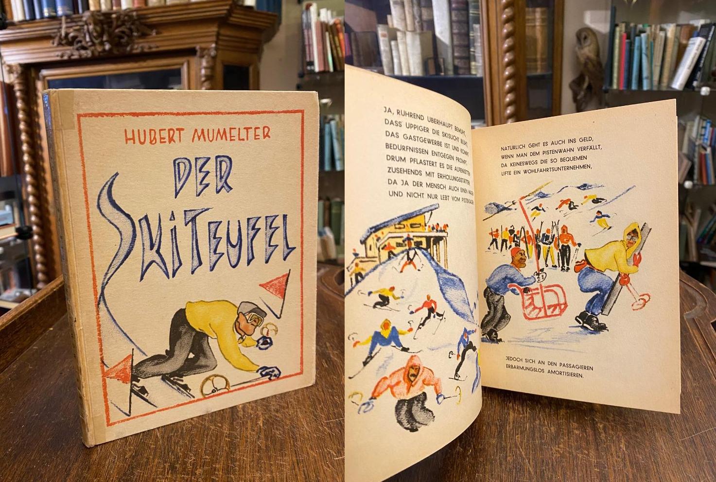 Mumelter, Hubert (Text/Ill): Der Skiteufel. [Wien], Paul Neff Verlag / Wien, Globus (Druck), [1950]. 8° (20x16), [48] S., mit zahlr. farb Illustrationen, beidseitig farb ill OPbd, Rücken alt transparent verstärkt, fest sauber und gepflegt,