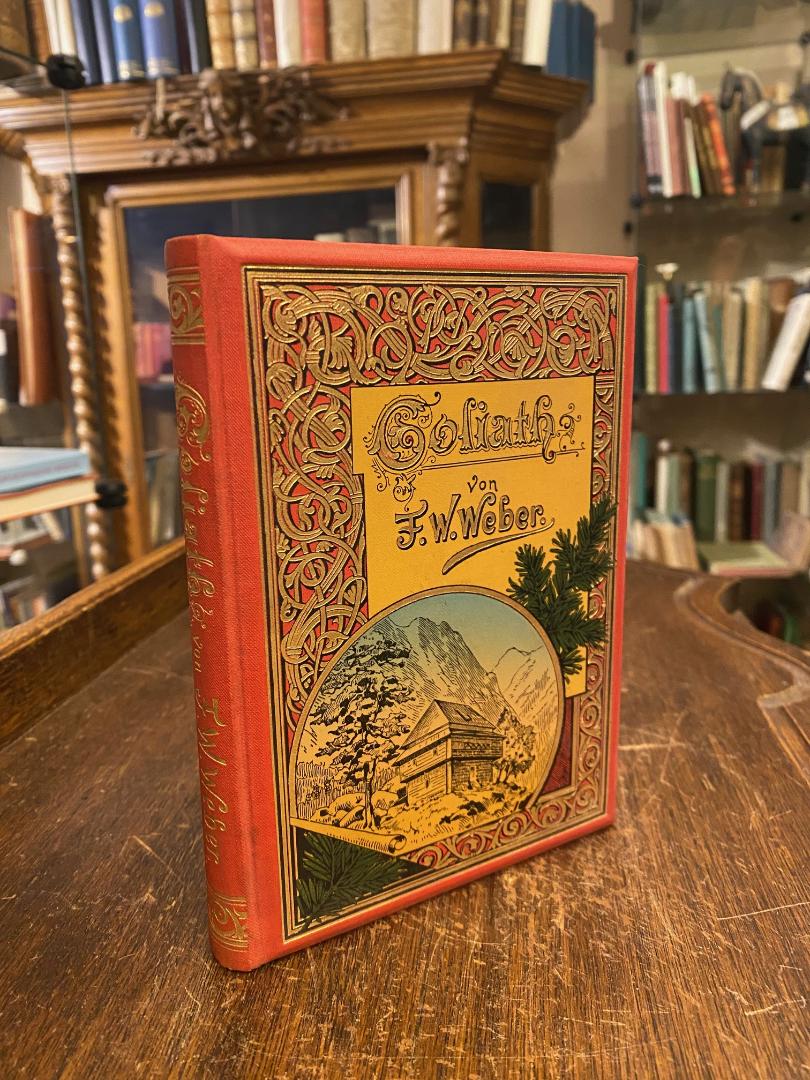 Weber, Friedrich Wilhelm: Goliath. 25.-28. Aufl., Paderborn, Verlag von Ferdinand Schöningh, [um 1900], kl8° (17x12), 130 S., 1 Bl., roter Oln gewachst mit Deckelbild in Medaillon und reicher goldPräg, dreiseitiger Goldschnitt, SchmuckVorsätze, Lesebändchen, wohlerhalten und frisch,