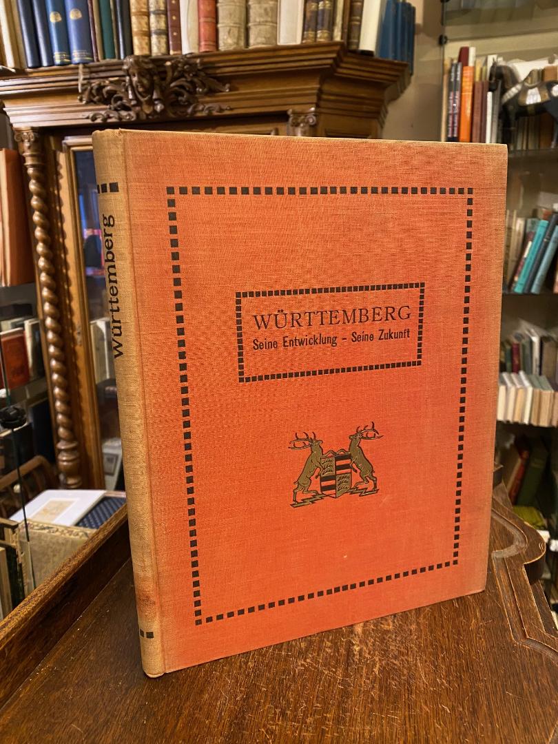 Köhrer, Erich (Hg): Das Land Württemberg mit Hohenzollern : Seine Entwicklung und seine Zukunft. Ein Sammelwerk unter Mitwirkung führender Persönlichkeiten des Landes. 2. Aufl., Berlin, Deutsche Verlags-Aktiengesellschaft, 1926. 4° (31x24), 304 S., mit zahlr. Text- und TafelAbb., sowie reich illustrietem Inserateteil, roter Oln mit Titeldprägung und Wappen in goldDruck, Einband lichtrandig, Archivstempel auf Innenspiegel, sonst sauber und wohlerhalten, [= Deutsche Stadt – Deutsches Land : Eine Bücherreihe; 12 : herausgegeben von Erich Köhrer],