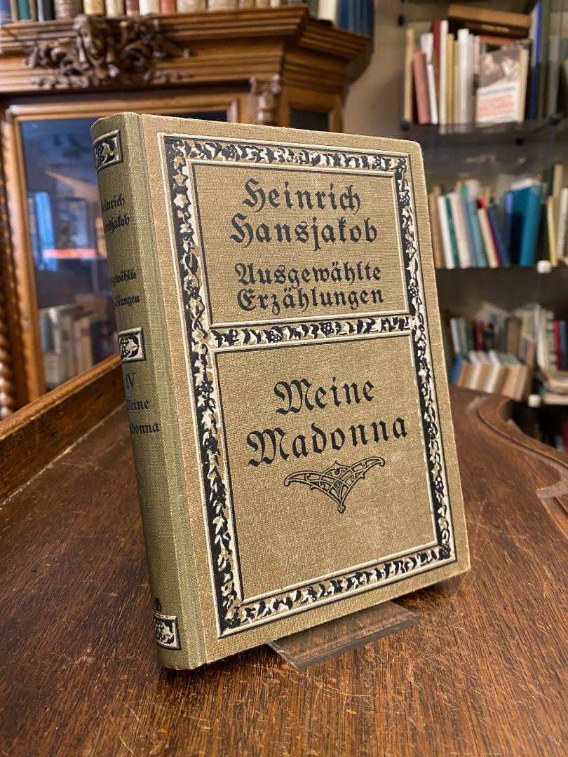 Hansjakob, Heinrich: Meine Madonna : Eine Familienchronik. 10.-12.Tsd., Stuttgart, Verlag von Adolf Bonz & Comp, 1914. 8° (18x13), 233 S., OHln mit TitelPrägung und Weinlaubdekor, etwas berieben, Name auf Vorsatz und hinterem Innenspiegel, Block leich schief, gutes Exemplar, [= Hansjakob : Ausgewählte Erzählungen : Volksausgabe [in 5 Bänden]; Band 4],