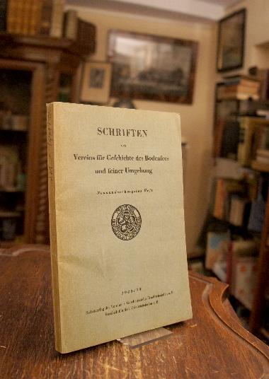 Bodenseevereinsschrift Jg 1949/1950 = Heft 69. – Leiner, Bruno (Schriftltg.): Schriften des Vereins für Geschichte des Bodensees und seiner Umgebung : 69. Heft : 1949/1950. Friedrichshafen, Selbstverlag, 1949. gr8°, 189 (26) S., mit Tafelteil, OKart (Brosch), STaT, 1 Artikel mit Marginalien, sonst schön, [= SchrrVGBodensee; 69], enthält folgende Textbeiträge: Robert Gradmann: Pfahlbauten und Klimaschwankungen.– Otto Gönnerwein: Die Rechtsgeschichte des Bodensees bis zum Dreißigjährigen Krieg.– Hektor Ammann: Konstanzer Wirtschaft nach dem Konzil.– Paul Motz: Konstanzer Bürgerhäuser des Mittelalters.