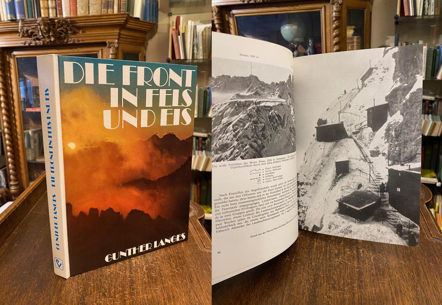 Langes, Gunther: Die Front in Fels und Eis : Der Weltkrieg 1914-1918 im Hochgebirge. Mit einer Übersicht über den heutigen Zustand des ehemaligen Frontgebietes von Oberstleutnant Walther Schaumann. 8. Aufl., Bozen, Verlagsanstalt Athesia, 1983. gr8° (25x19), 248 S., 2 Bl., mit zahlr. historischen fotograf Aufnahmen, KartenVorsätze, ill OPbd, Name auf Vortitelblatt, sonst nahezu ungelesen, schönes gepflegtes Exemplar, vorliegendes Werk ist eine historische Darstellung des Hochgebirgskrieges von 1915/18. Aus Originalberichten, zeitgenössischen Bildern, Skizzen und schmatischen Darstellungen ersteht das Bild einer ‚Front in Fels und Eis‘. Ein touristischer Anhang schlägt die Brücke zur Gegenwart, indem er die heutige Situation und Begehbarkeit des ehemaligen Frontgebietes aufzeigt.–