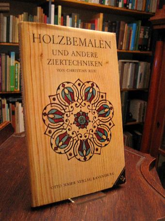Rubi, Christian: Holzbemalen und andere Ziertechniken. (Lizenzausgabe mit Genehmigung des Verlag Hans Huber, Bern), Ravensburg, Otto Maier Verlag, 1972. gr8° (24x15), 175 S., mit zahlr. teils farb Abb., Oln mit ill OU (dieser mit kleinem Randeinriss), sauber und gepflegt, enthält auch Lasurüberzüge, Kleinermalerei, Malen auf Mauerputz, Typographie.–
