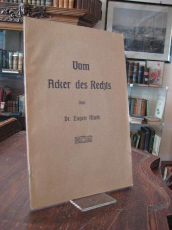 Mack, Eugen: Vom Acker des Rechts. Wolfegg, Verlag Fürstliche Domanialkanzlei Wolfegg (Würtgb. Oberland.) / Waldsee, C. Liebel [Druck], 1923. gr8° (23x15), 53, (2) S., OKart (Brosch), etwas gebräunt, gute gepflegtes Exemplar, mit einem Verzeichnis der Schriften von Eugen Mack 1908-1923 (40 Titel).— Eugen Mack (1882-1947): 1907 Vikar in Rottenburg.– 1912 Stadtarchivar in Rottweil.– ab 1917 Fürstlicher Archivar in Wolfegg, 1923 Ernennung zum Archivrat der Fürsten von Waldburg-Wolfegg.—