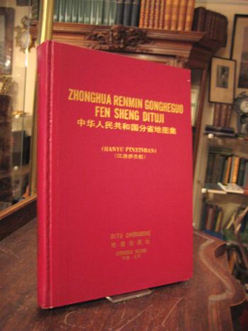 Zhonghua Renmin Gongheguo Fen Sheng Dituji (Hanyu Pinyinban). 1 ban Beijing di 2 ci yinshua, Zhongguo Beijing, Ditu Chubanshe, (1977). 8°, 4 Bl., 51 double pages (maps), 169 p. (index), publisher’s hardbound red cloth spine, gilt title, corners sl bumped, tight and clean, well cared, Atlas of the Peoples Republic of China.–