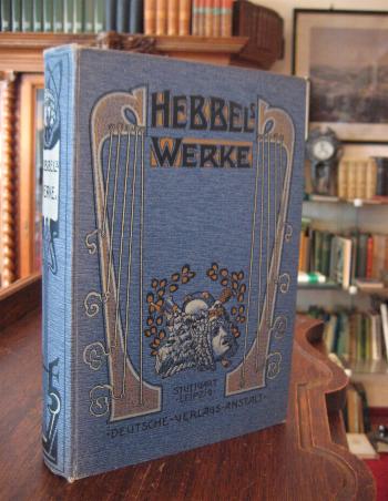 Hebbel, Friedrich (1813-1863). – Bartels, Adolf (Hrsg): Friedrich Hebbels Sämtliche Werke [in einem Band]. Herausgegeben und mit einer biographisch-literarischen Einleitung versehen von Adolf Bartels. Mit einem Bildnis des Dichters nach Joseph Kriehuber. Stuttgart-Leipzig, DVA Deutsche Verlags-Anstalt, [1906]. gr8° (24x16), XXXII, 1023 S., mit FrontispizPorträt, blauer Oln mit Jugendstil-Illustration, Titelei schwach stockfleckig, Papier gebräunt, gutes Exemplar, [= Bongs Goldene Klassiker-Bibliothek],