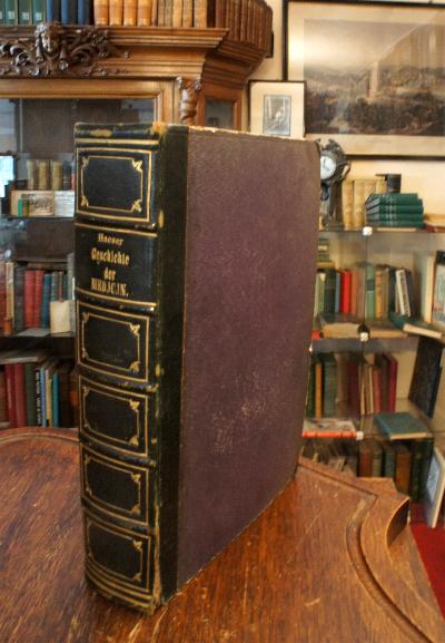 Haeser, [Heinrich]: Lehrbuch der Geschichte der Medizin. 2., völlig umgearbeitete Aufl., Jena, Verlag von Friedrich Mauke, 1853. 8° (22x16), XLVIII, 923 S., Hldr d.Zt. mit dekorativer goldRPräg, Rückenkante einseitig etwas aufgeplatzt (4cm), Kanten etwas bestossen, Besitzvermerk auf Vorsatz, teils etwas gebräunt, gutes Exemplar, [= Lehrbuch der Geschichte der Medizin und der epidemischen Krankheiten; 1], [Garrison/Morton (1970;3ed); 6384].– Heinrich Haeser (1811-1885) Professor in Greifswald; die klassische Gesamtdarstellung in der kompakten zweiten Bearbeitung.–