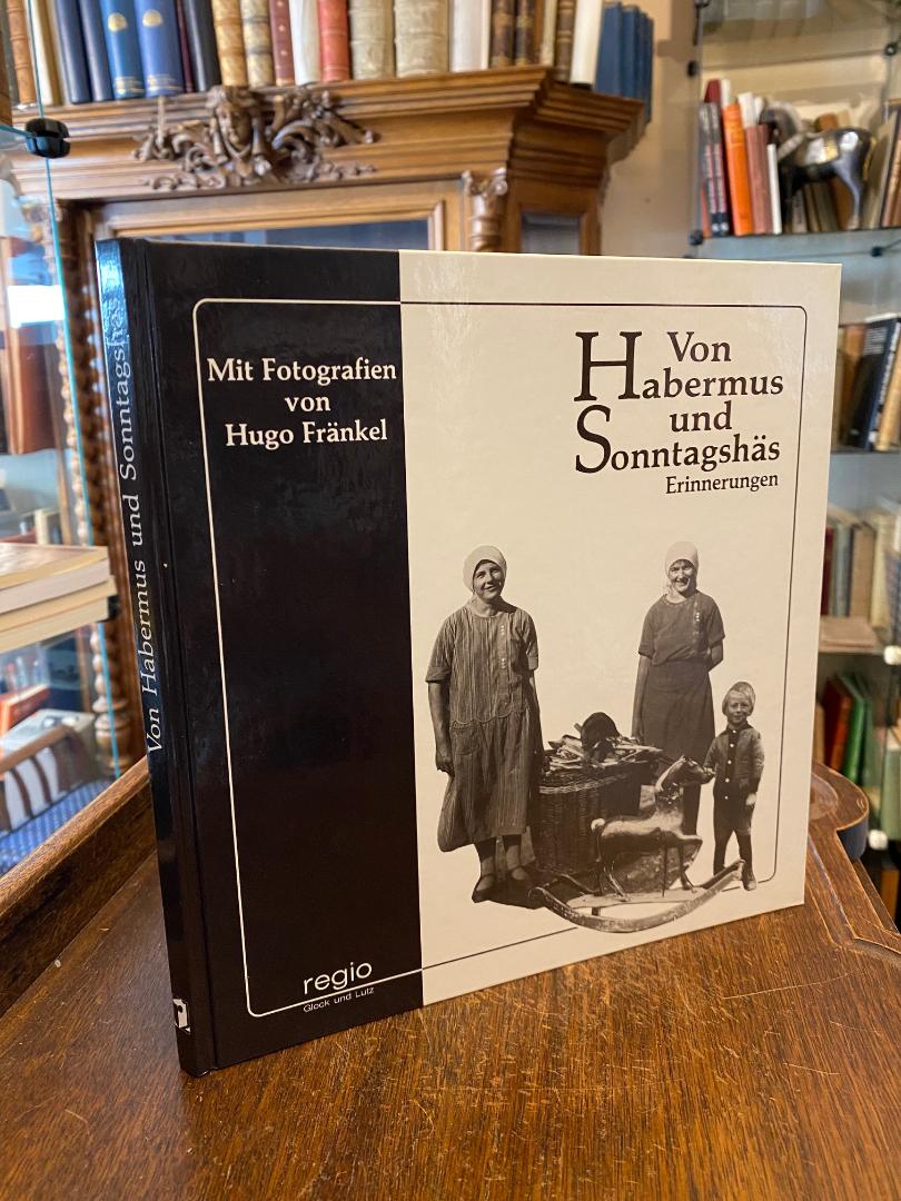 Fränkel, Hugo. – Ballarin, Wilfried / Deutsch, Heidrun / Kaminski, Ursula / Paape, Walther (alle Hrsg): Von Habermus und Sonntagshäs : Leben auf dem Dorf 1917 – 1937 – Erinnerungen. Mit Fotografien von Hugo Fränkel. (1. Aufl.), Sigmaringendorf, reio Verlag Glock und Lutz, 1990. 4° (25x24), 140 S., mit rund 150 teils großformatigen fotograf s/w-Aufnahmen, fotoill OPbd, sauber und wohlerhalten, In diesem Band wird eine Auswahl von rund 150 Fotografien veröffentlicht. Sie geben nicht nur Zeugnis von einer längst verloren geglaubten dörflichen Welt in einer Region Oberschwabens, der ‚Göge‘, sondern weit darüber hinaus stehen sie für zwei Jahrzehnte von 1917 bis etwa 1937, die von einem Umbruch bestimmt waren, der alle ländlichen Bereiche Deutschlands, ja Europas kennzeichnete. Fränkels Fotografie beginnt im Kaiserreich, erreicht ihren Höhepunkt in der Weimarer Zeit und endet im Dritten Reich.