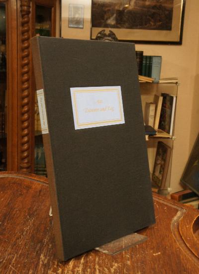 Aus Dämmer und Tag : Eine Anthologie deutschschweizerischer Gedichte. Bern-Stuttgart, Verlag Hans Huber, (1955). 8° (21x13), 119 S.,Bütten, schwarzer Oln mit TitelPräg, Rücken aufgehellt, kaum gelesen, fest sauber und gepflegt, Weihnachtsgabe von Buchhandlung und Verlag Hans Huber.– nummeriertes Exemplar 972/1000.–