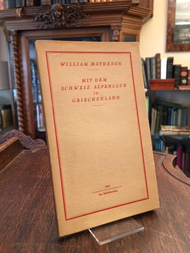 Matheson, William: Mit dem Schweiz. Alpenclub in Griechenland. [Olten], Selbstverlag 1934. 8° (20x12), 62 S., mit 1 mont Original-Fotografie, OKart (Brosch) mit OU, etwas gebräunt, fest sauber und gepflegt,
