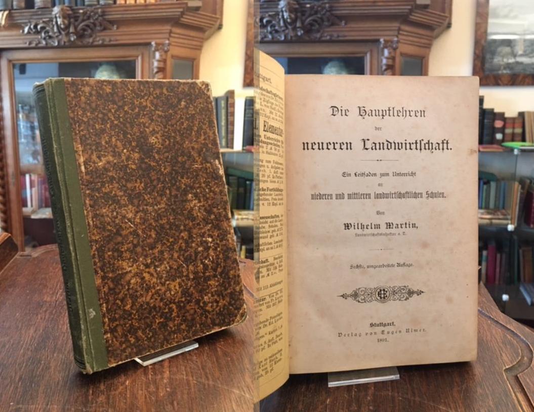 Martin, Wilhelm: Die Hauptlehren der neueren Landwirtschaft : Ein Leitfaden zum Unterricht an niederen und mittleren landwirtschaftlichen Schulen. 6., umgerabeitete Aufl., Stuttgart, Verlag von Eugen Ulmer, 1891. 8° (21x15), VIII, 348 S., marmor OHln mit geprägt RTitel, etwas berieben, Kanten bestossen, angestaubt, teils etwas fleckig, festes Exemplar,