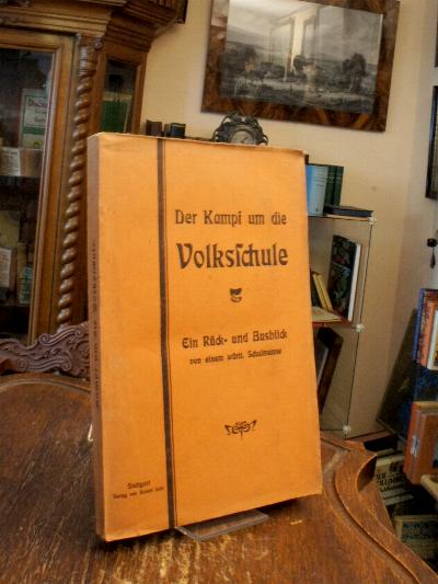 Der Kampf um die Volksschule : Ein Rück- und Ausblick von einem württ. Schulmanne. Separatabdruck einer Artikelserie aus dem ‚Lehrerheim‘. Stuttgart, Verlag von Robert Lutz, 1903 8° (22x14), (VII), 274 S., OKart (Brosch), angestaubt, Besitzvermerk auf Titelblatt, unaufgeschnitten, offensichtlich ungelesen, ‚Vorliegende Schrift macht den Versuch, über den Kampf um die Volksschule im 19. Jahrhundert und über die wichtigsten der schwebenden Schulfragen zu orientieren.‘ (aus dem Vorwort)