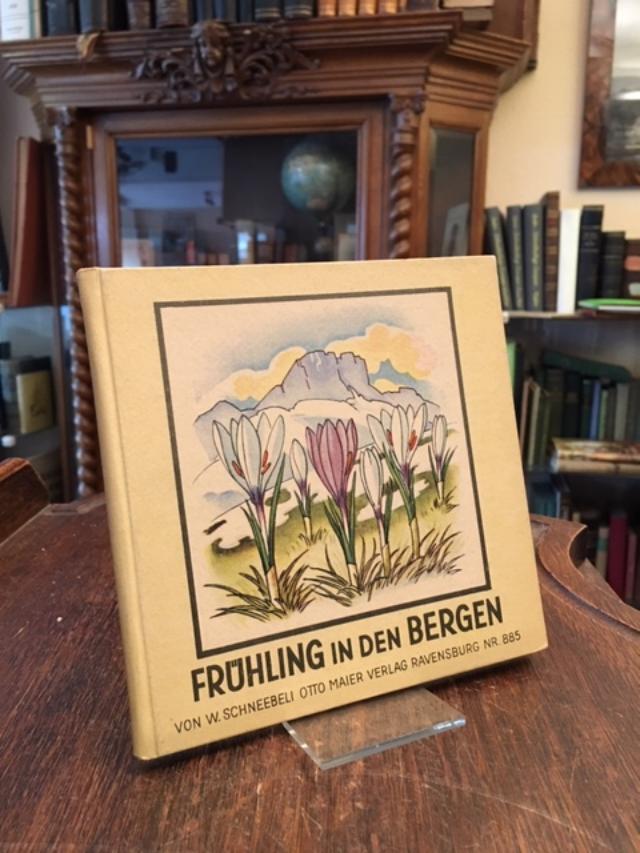 Schneebeli, [William]: Frühling in den Bergen. Erzählt und Gezeichnet von W. Schneebeli. Ravensburg, Otto Maier Verlag, (1943). 8° (15x15), 25 S., mit 12 ganzseitigen farb Illustrationen, ill OPbd, leicht gebräunt, nahezu ungelesen, schönes gepflegtes Exemplar, [= Verlags-Nr. 885 : Geschichten aus der Natur; 25],