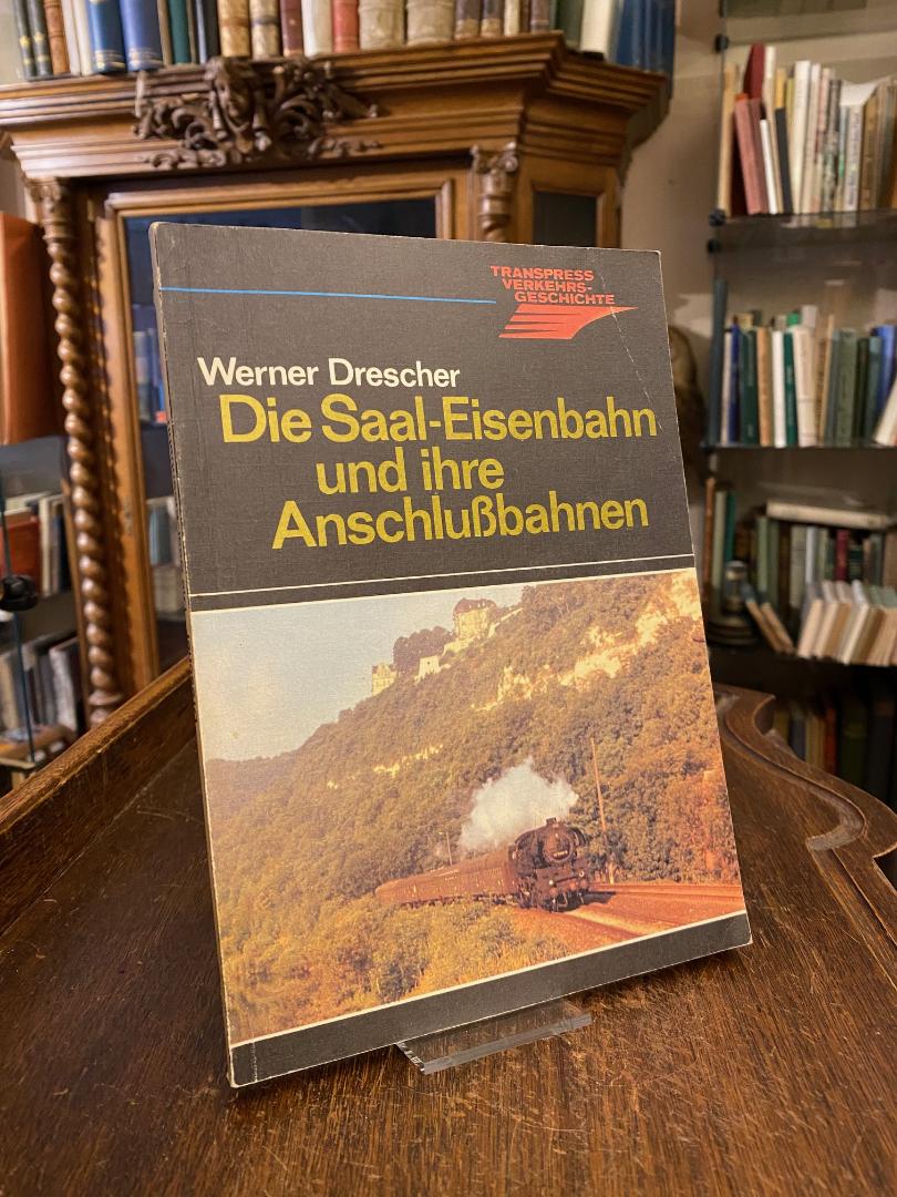 Drescher, Werner: Die Saal-Eisenbahn und ihre Anschlußbahnen. 1. Aufl., Berlin, Transpress VEB Verlag für Verkehrswesen, 1987. 8° (23x16), 160 S., mit 192 historischen Aufnahmen, Schnittzeichnungen, Faksimiles und 42 Tab., fotoill OKart (Brosch), gering berieben, gutes sauberes Exemplar, [= Transpress Verkehrsgeschichte],