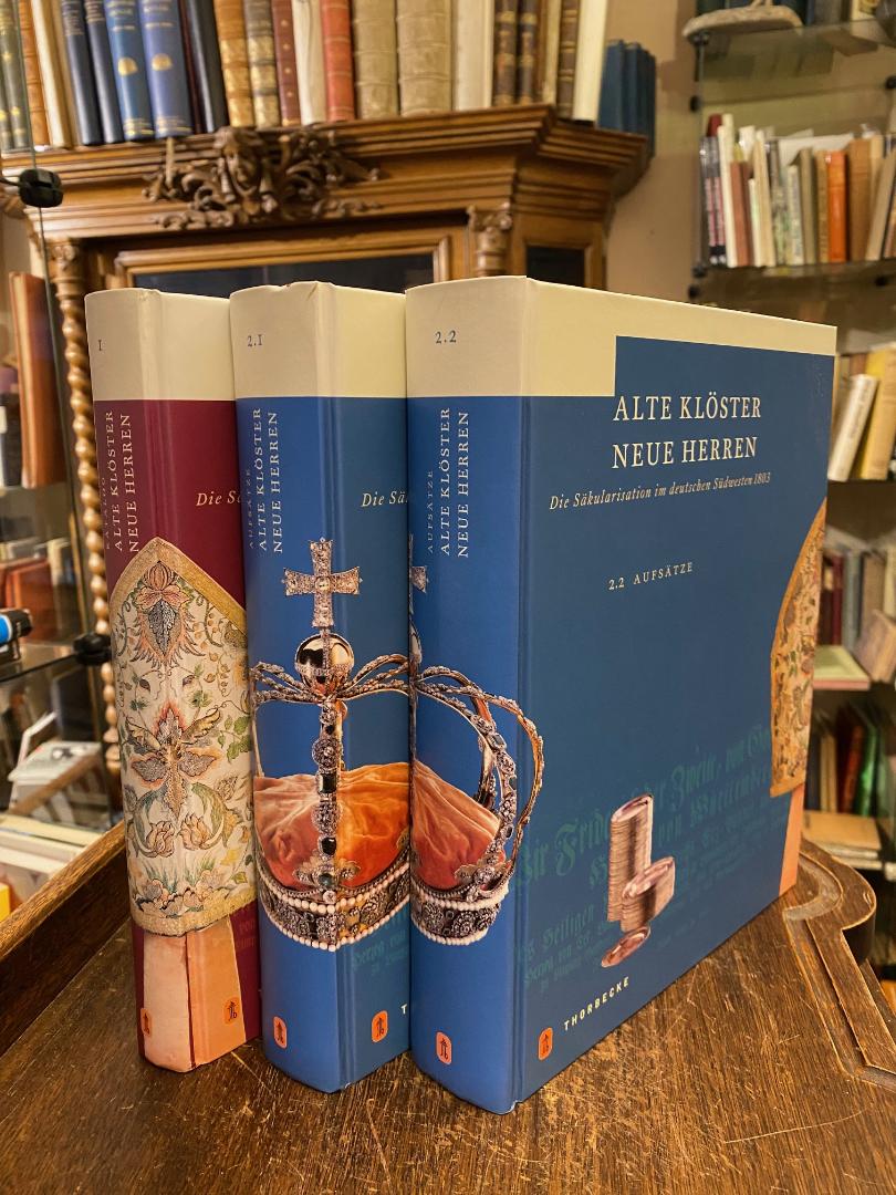 Himmelein, Volker (Hrsg): Alte Klöster Neue Herren : Die Säkularisation im deutschen Südwesten 1803 (3 Bände). 2 Bände in 3 [so komplett]. Ostfildern, Jan Thorbecke Verlag, 2003. 4° (26x20), 464; XVI,714 S.; VII,S.715-1467; reich illustriert, ill OPbde, 1 Band mit kleinem Namensetikett, sonst ohne Gebrauchsspuren, wohl ungelesen, sehr schön, Band 1. Ausstellungskatalog.– Bände 2.I. und 2.II. Aufsätze.— Der Katalog zur gleichnamigen Landesausstellung in Bad Schussenried.–