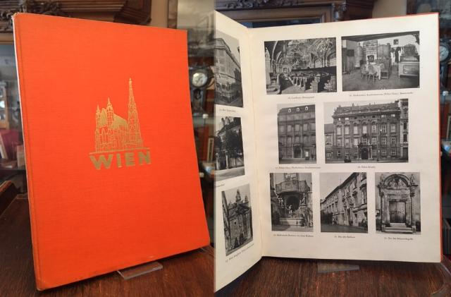 Wien. – Tietze, Hans (Einl): Wien und Umgebung in 264 Bildern. Wien, Verlag von Anton Schroll & Co, [1928]. 4° (29x23), 4 Bl., [42] S., 4 Bl., mit 264 fotograf Aufnahmen auf 42 Tafeln, orange Oln mit goldPräg, gering angestaubt, illustrierter OU auf Vorsatz montiert, gelegentlich minimalst fleckig, gutes Exemplar,