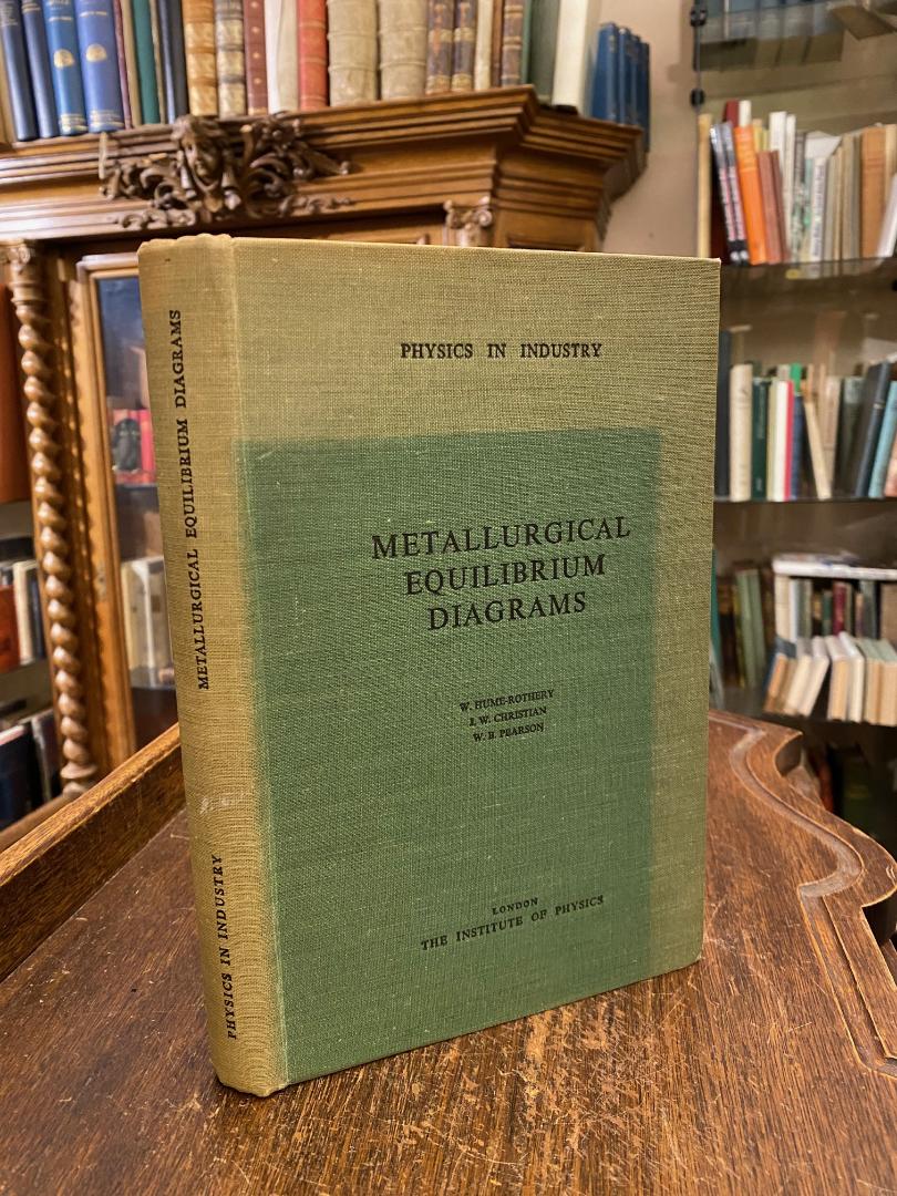 Hume-Rothery, William / Christian J.W. / Pearson, W.B.: Metallurgical Equilibrium Diagrams. London, The Institute of Physics, 1952. 4° (25x16), 311 p., with 238 figures and numerous plates, publisher’s hardbound cloth, boards sunned, name on title, tight and clean, [= Physics in Industry], aus dem Nachlass des Chemikers Prof. Armin Schneider (1906-1986), mit dessen Besitzvermerk auf Vorsatz.–