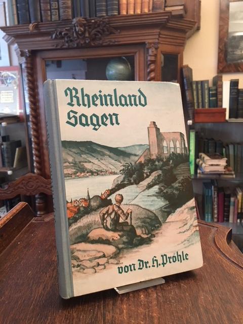 Pröhle, Heinrich (Hrsg): Rheinland-Sagen. Mit Bildern von C. Hachez. Berlin, Meidingers Jugendschriften : Globus Verlag, [um 1940]. 8° (22x15), 192 S., mit 2 farb Tafeln, farb ill OHln, Ecken etwas bestossen, rückseitig schwacher Knick, Namensetikett auf Innenspiegel, gutes leicht gebräuntes Exemplar, (Rheinlandsagen)