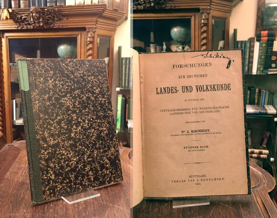 Schlatterer, [August]: Die Ansiedelungen am Bodensee in ihren natürlichen Voraussetzungen. Eine Anthropogeographische Untersuchung. Mit einer Karte. Stuttgart, Verlag von J. Engelhorn, 1891. 8° (22x16), 2 Bl., 69 S. (= S. 377-445), 1 gefaltete Karte, (so komplett), marmor Hln d.Zt, vereinzelte Bleistiftunterstreichnungen, [= Forschungen zur deutschen Landes- und Volkskunde; 5 : herausgegeben von A. Kirchhoff / zgl. Dissertation Universität Freiburg : Philosphische Fakultät; 1891],