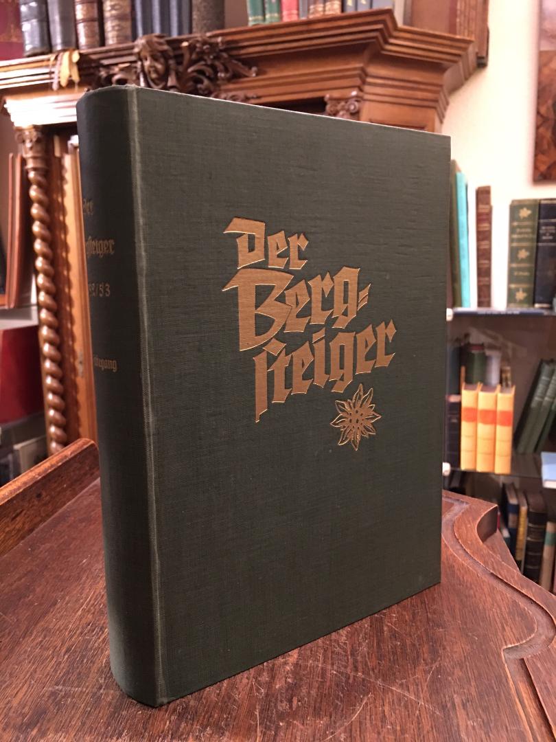 Bergsteiger, Der.– 20. Jahrgang. – Schätz, Josef Julius [Schriftl]: Der Bergsteiger : 20. Jahrgang : Oktober 1952 bis September 1953. Zeitschrift für Bergsteiger und Schiläufer. München, Verlag F. Bruckmann, 1952-1953. 4° (25x18), (VII), 496, 138 S., mit zahlr. Abb., Karten, Oln mit goldTitel, minimal angestaubt, fest sauber und gepflegt, kompletter Jahrgang durch Register erschlossen.– angebunden: ‚Bergsteiger-Chronik‘.–