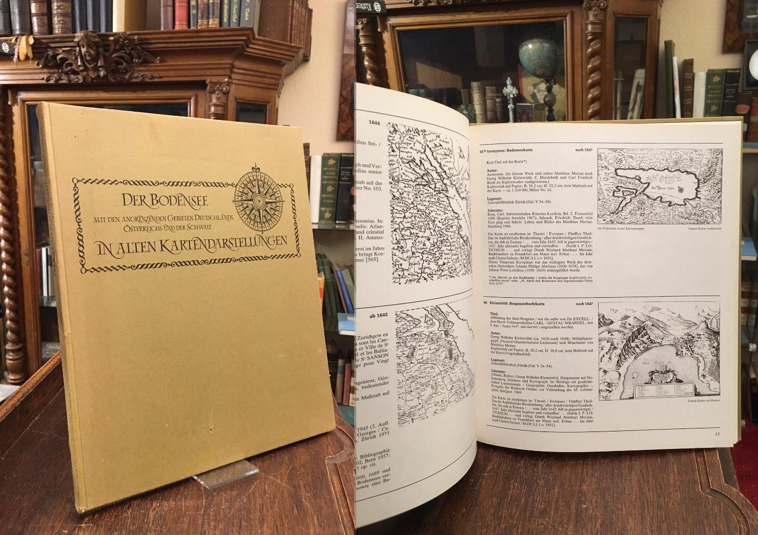 Dürst, Arthur / Bonaconsa, Ugo: Der Bodensee mit den angrenzenden Gebieten Deutschlands, Österreichs und der Schweiz in alten Kartendarstellungen : Katalog. Konstanz, Verlag Friedr. Stadler, 1975. 4° (31x26), 88 S., OPbd, Einband mit kleinem Kratzer und minimal angeschmutzt, gutes Exemplar, beschrieben werden 120 Karten des Bodenseeraums von den Anfängen bis zum Beginn des 19. Jahrhunderts, einzeln abgebildert und erläutert.– ohne die Kartenmappe mit den Faksimiledrucken in Originalgrösse.–
