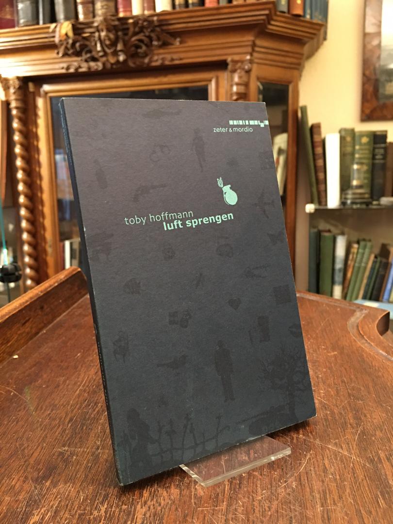 Hoffmann, Toby: Luft sprengen. Hannover, verlag für nebenwelten : maYa birken, Oktober 2007. 8° (19x12), 139 S., OKart (Brosch TB), fest sauber und gepflegt, auf Vortitel handschriftliche Widmung des Autors SIGNIERT ‚ die rache der sprache / ist das gedicht (Ernst Jandl) / für […] / mit 1000 Dank / für die Unterstützung / in den letzten Jahren. / Toby Hoffmann / RV/11/07‘.—