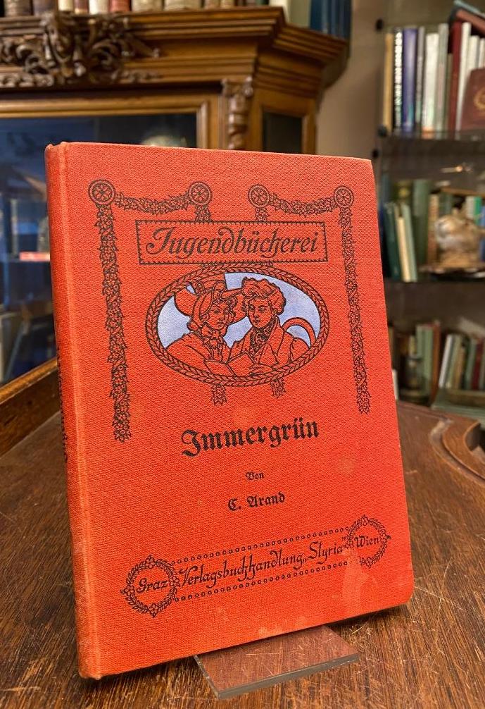 Arand, [Cäcilie]: Immergrün : Erzählungen. Mit vier Illustrationen. 2. Aufl., Graz und Wien, Verlagsbuchhandlung Styria, [1907]. 8° (18x13), 127 S., mit Frontispiz und weiteren 3 Tafeln, roter Oln mit Bildnismedaillon, WerbeVorsätze, Einband schwach fleckig, sonst fest sauber und gepflegt, [= Neue illustrierte Jugendbücherei; 2], [Pataky, Lexikon deutscher Frauen der Feder; I, 16].– Cäcilie Arand, geboren 1838 in Winterstettenstadt bei Bad Waldsee, 1864 verheiratet mit dem Waldseer Arzt Hermann Ferdinand Arand.–