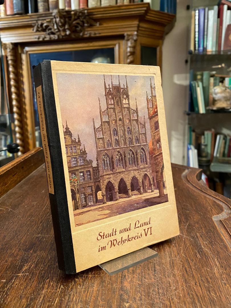 Wehrkreiskommando VI Gruppe I c, Münster i. Westf. (Hrsg): Stadt und Land im Wehrkreis VI. Essen, W. Girardet (Druck), (1942). kl8° (17x12), 2 Bl., 224 S., mit zahlr. fotograf Aufnahmen, OPbd mit mont farb Deckelbild, Rücken neu aufgezogen unter Verwendung des alten Rückentitels, sonst ohne Gebrauchsspuren, offensichtlich ungelesen,