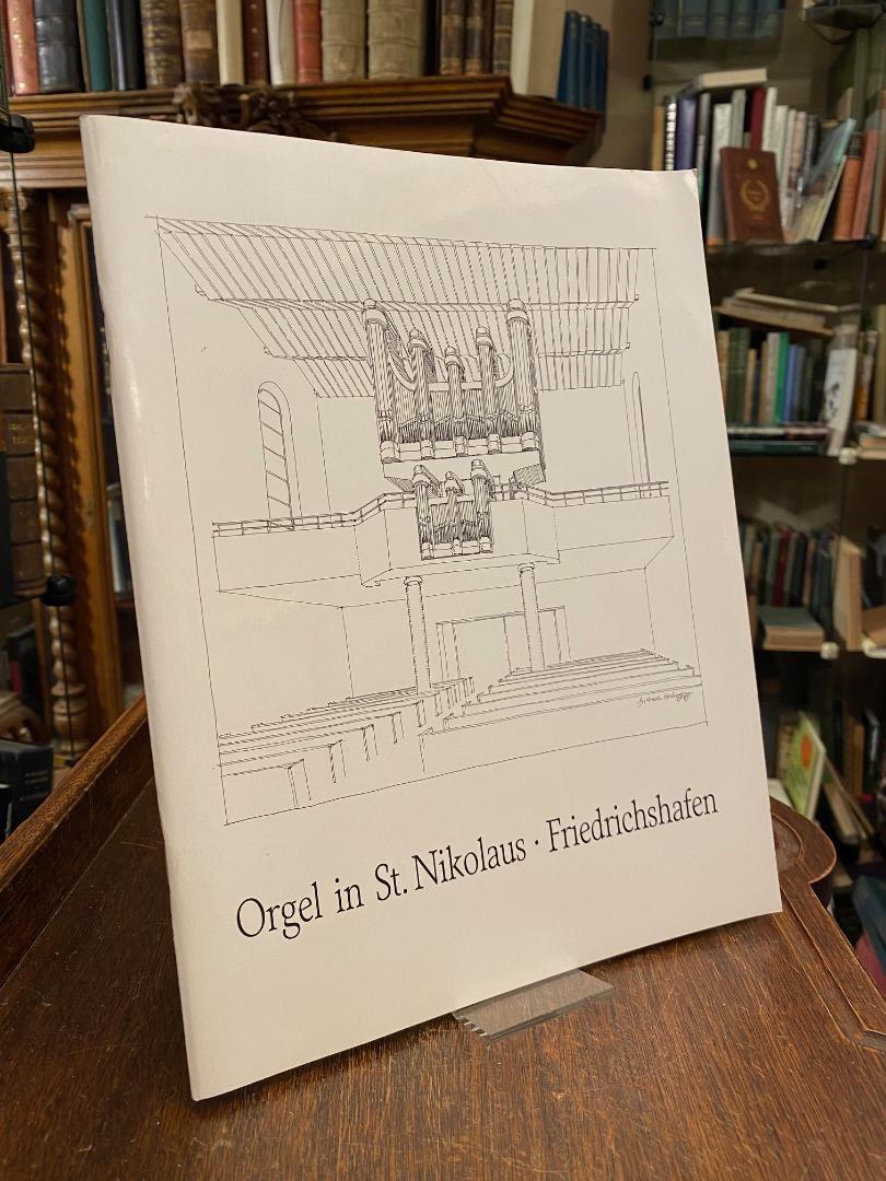 Friedrichshafen. – Wieland, Georg (Kirche) / Brülls, Holger (Orgel): Orgel in St. Nikolaus, Friedrichshafen : Die Orgel in der St.-Nikolaus-Kirche in Friedrichshafen. 1. Aufl., Friedrichshafen, Kirchengemeinde St. Nikolaus, 1989. 4° (30x23), [30] S., mit fotograf Aufnahmen, graph. Darst., ill OKart (Brosch), fest sauber und gepflegt,