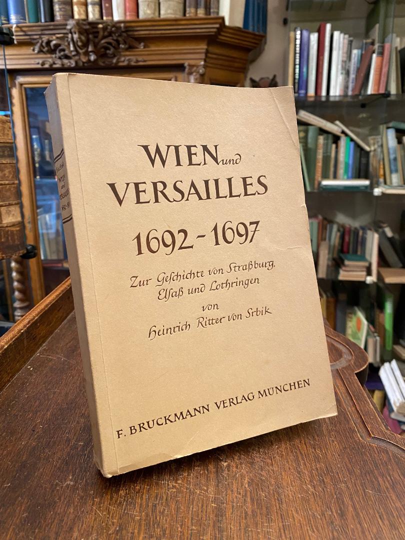 Srbik, Heinrich Ritter von: Wien und Versailles 1692 – 1697 : Zur Geschichte von Strassburg, Elsass und Lothringen. München, Verlag F. Bruckmann, 1944. 4° (25x17), IX, 339 S., mit doppelseitiger Karte, OKart (Brosch), unbeschnitten, etwas angestaubt, minimaler Eckknick, Gebrauchsspuren,