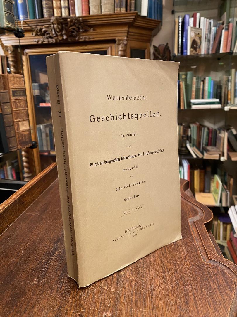 Bossert, Gustav (I) (Bearb) // Schneider, Eugen / Kaser, Kurt (II) (Bearb): (I) Württembergisches aus dem Codex Laureshamensis, den Traditiones Fudenses und aus Weissenburger Quellen.– (II) Württembergisches aus römischen Archiven. Stuttgart, Verlag von W. Kohlhammer, 1895. gr8° (24x16), (IV), 614 S., mit 1 mehrfach gefalteten Karten auf stärkerem Papier, OKart (Brosch), unbeschnitten/unaufgeschnitten, offensichtlich ungelesen, [= Württembergische Geschichtsquellen; 2 : herausgegeben von Dietrich Schäfer im Auftrag der Württembergischen Kommission für Landesgeschichte],