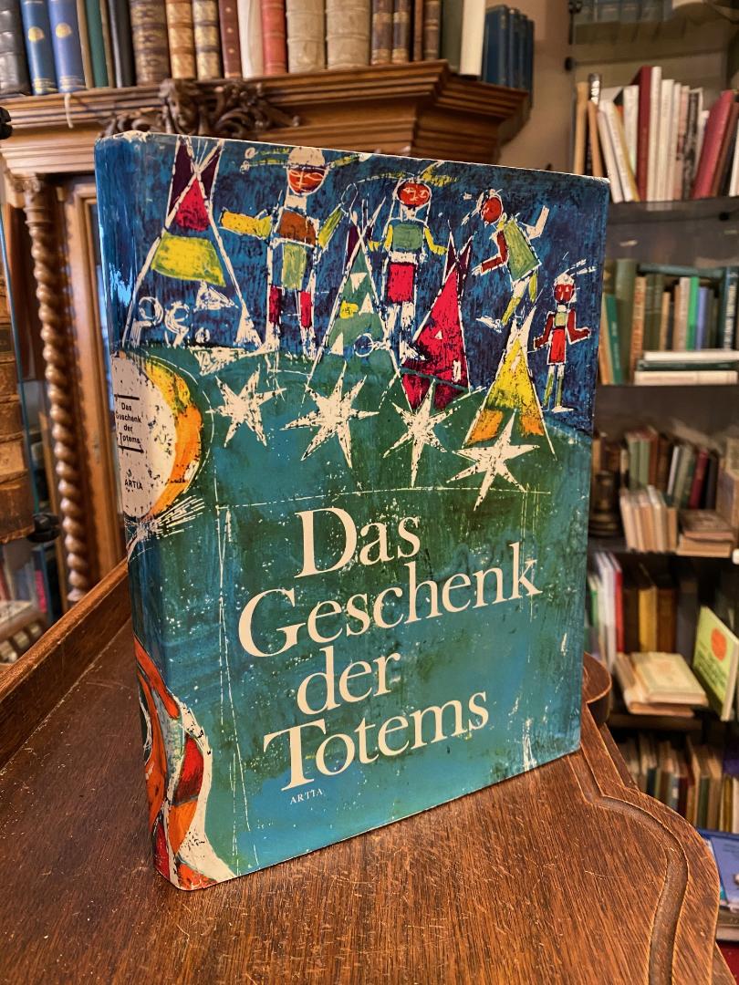 Hulpach, Vladimir: Das Geschenk der Totems : Indianermärchen. Illustriert von Miroslav Troup. Deutsch von Eva Svorcikova. überarbeitete Aufl., Prag, Artia, 1972. 4° (28x21), 220 S., 2 Bl., mit zahlr. teils ganzseitigen farb Illustrationen, Oln mit goldPräg mit ill OU, nahezu ungelesen, schönes gepflegtes Exemplar, enthält: Das Geschenk der Totems.– Die Entstehung der Welt.– Wer die Sonne brachte.– Die große Flut.– Wie die Indianer auf die Welt kamen.– Wer das Gewitter macht.– Das Feuer.– Die Regenbogenschlange.– Eine weiße Spur zeigt sich am Himmel.– Das große Rennen.– Die sieben Brüder.– Krankheiten und Heilkräuter.– Wie der Tod ins Indianerland kam.– Wie die Indianer zu den Pferden kamen.– Das Haar der Greisin.– Die Eule und die gelbe Maus.– Die Löwenzahnblume.– Die goldenen Kraniche.– Der Kojote und die Büffel.– Die Freundschaft des Fischotters.– Das Kaninchen und die Wildkatze.– Die verfeindeten Freunde.– Das Abenteuer mit dem Walfisch.– Der Kojote, der Fuchs und der Maisladen.– Das Nest der Elster.– Wölfe und Hirsche.– Der verzauberte Hirsch.– Wie die Schlange Giftzähne bekam.– Erdbeeren.– Skunk und Lange Kralle.– Der Biber und das Stachelschwein.– Das Märchen von der weißen Seerose.– Die Schildkröte auf dem Kriegspfad.– Die verlassenen Kinder.– Der treueste Freund.– Der weise Hiawatha.– Vom starken Gitamat.– Ahajute und der Wolkenfresser.– Schingebis und Kabibonoka.– Manabusch.– Die Sternbraut.– Der Purpurschwan.– Wihios Wanderlied.– Okteondo und die Wildgänse.– Das Märchen vom Niagara.– Schawenis und das Wasser des Lebens.– Das ewige Lied.– Wie die Streitaxt begraben wurde.–