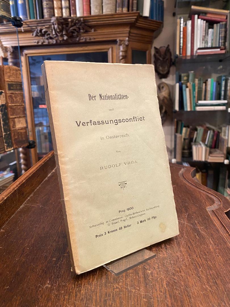 Vrba, Rudolf [OPraem] (1860-1939): Der Nationalitäten- und Verfassungsconflict in Österreich. Prag, Selbstverlag / In Commission: Cyrillo-Method’sche Buchhandlung : G. Francl, 1900. 8° (21x13), 292 S., 1 Bl., OKart (Brosch), Umschlag etwas lichtverfärt und mit kleinem Fleckchen, unbeschnitten/unaufgeschnitten, offensichtlich ungelesen,