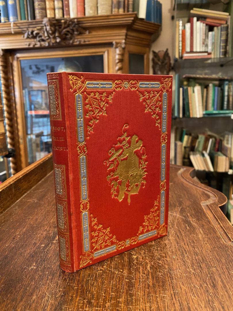 Monniot, Mlle [Victorine] (1824-1880): Coralie Delmont ou L’Orgueil Vaincu par la Charite. nouvelle edition, Paris, Librairie Catholique Perisse Freres / Bourgeuet-Calas et Cie Successeurs, [1874]. 8° (18x11), xii, 312 p., reliure d’editeur rigide en toile rouge, riche decoration en or, tranches dorees, gardes moiree blanches, tres bon etat, [= Collection D. S. G.], Provenance: bibliotheque ducale de chateau Altshausen.– sur titre avec ex libris Mariae Ducissae [c’est-a-dire Maria Immakulata d’Autriche Duchesse de Wurtemberg (1878-1968)].–