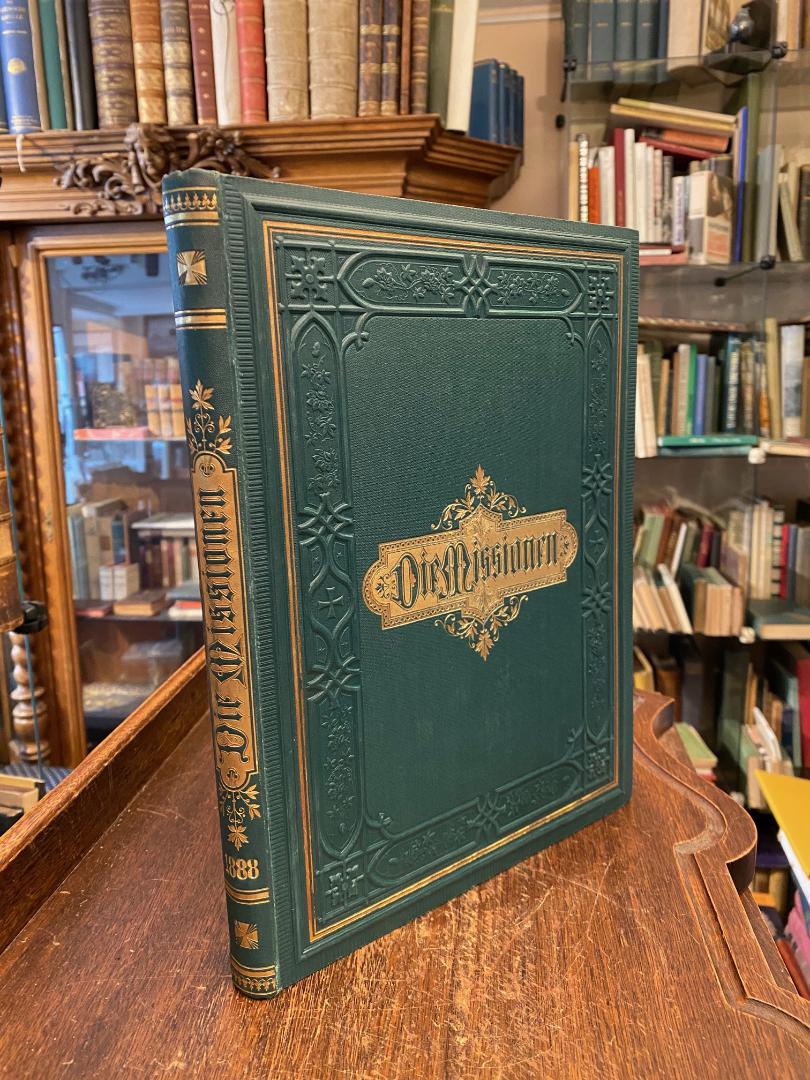 Hutter, F. J. (Hrsg): Die katholischen Missionen : Illustrirte Monatsschrift : 1888. Freiburg, Herder’sche Verlagshandlung, 1888. 4° (30x23), VIII, 260, 24 (Beilage für die Jugend), mit zahlr. Holzstichen, grüner Oln mit reicher Blind- und GoldPrägung, Lesebändchen, nahezu ungelesen, schönes gepflegtes Exemplar, vollständiger Jahrgang 1888, durch Register erschlossen.–