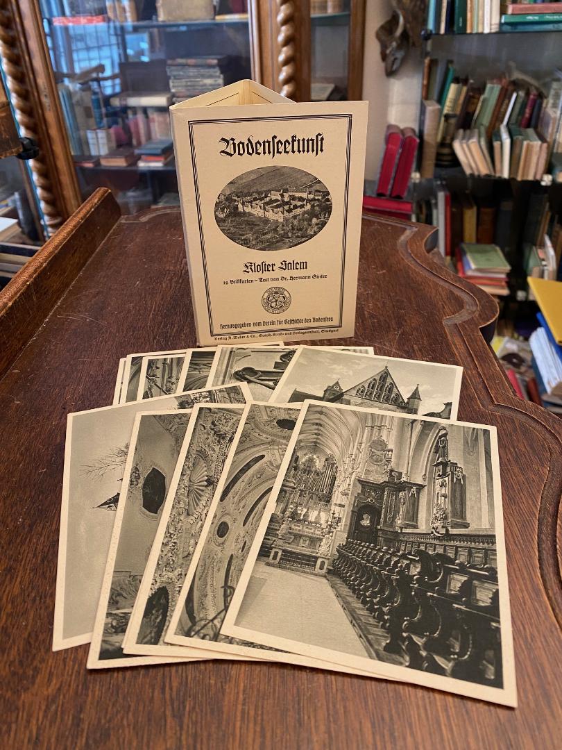 AK 88682 Salem. – Ginter, Hermann (Text): Bodenseekunst: Kloster Salem : 12 Bildkarten. Herausgegeben vom Verein für Geschichte des Bodensees. Stuttgart, Verlag A. Weber & Co, [um 1930]. kl8° (15x11), Faltmappe innenseitig mit Text, mit 12 Ansichtskarten, sauber und gepflegt,