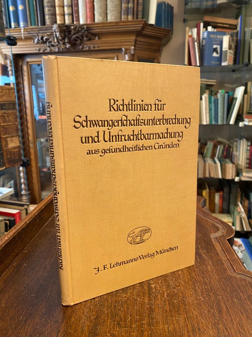 Stadler, Hans (Berab) / Reichsärztekammer (Hrsg): Richtlinien für Schwangerschaftsunterbrechung und Unfruchtbarmachung aus gesundheitlichen Gründen. München, J. F. Lehmann’s Verlag, 1936. 4° (25x17), 180 S., 6 Bl. Verlagsanzeigen, mit 94 Abb., heller Oln mit Titeldruck, minimalst angestaubt, Name auf Vorsatz, nahezu ungelesen, schönes gepflegtes Exemplar,
