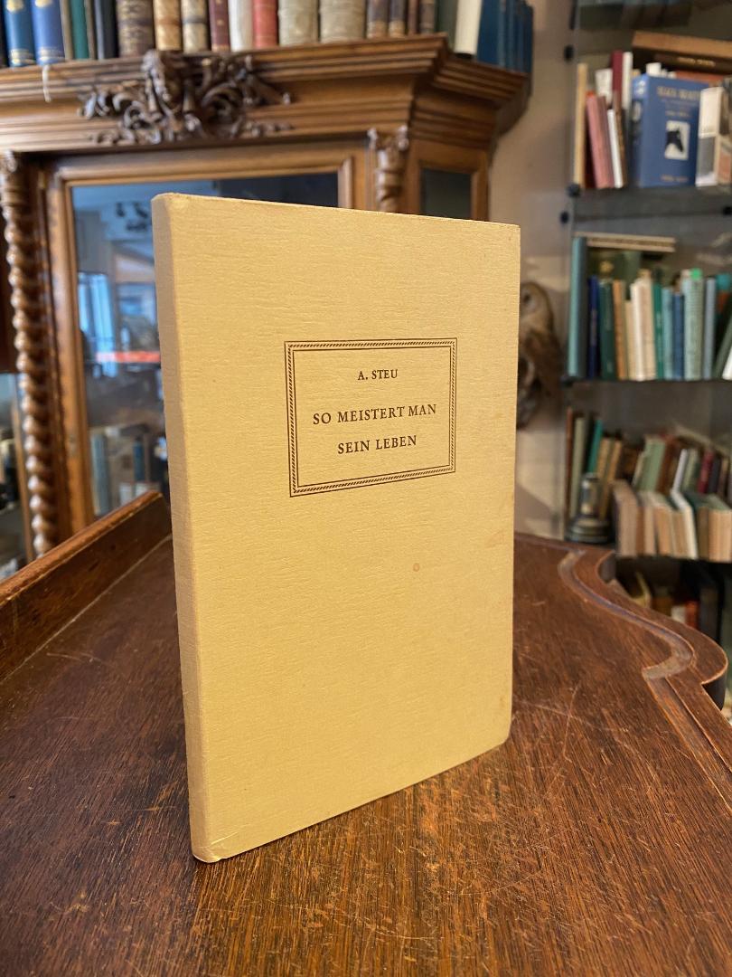 Steu, August: So meistert man das Leben – entfaltet seine unbegrenzten Innenkräfte – und realisiert Reichtum und Glück. Lindau / B. – (Heyren), Wissenschaftlicher Verlag August Steu, (1964). 8° (19x12), 51 S., 6 Bl. Verlagsanzeigen, Oln mit OU, Umschlag etwas angeschmutzt, sonst fest sauber und gepflegt,