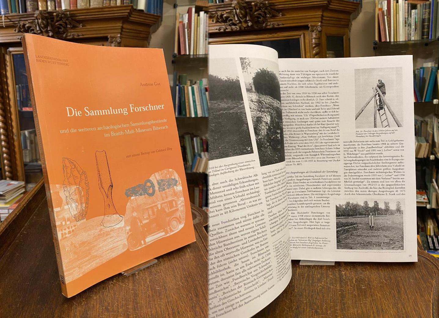 Gut, Andreas: Die Sammlung Forschner und die weiteren archäologischen Sammlungsbestände im Braith-Mali-Museum Biberach. Mit einem Beitrag von Gebhard Bieg. Stuttgart, Landesdenkmalamt Baden-Württemberg / Freiburg, Janus-Verlag, 2000. 4° (29x20), 172 S. + 85 Tafeln mit unzählingen Einzeldarstellungen, sowie einige dokumentarische Abb. im Textteil, ill OKart (Brosch), minimal berieben, nahezu ungelesen, schönes gepflegtes Exemplar,