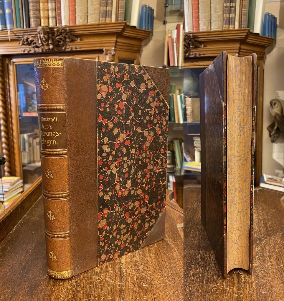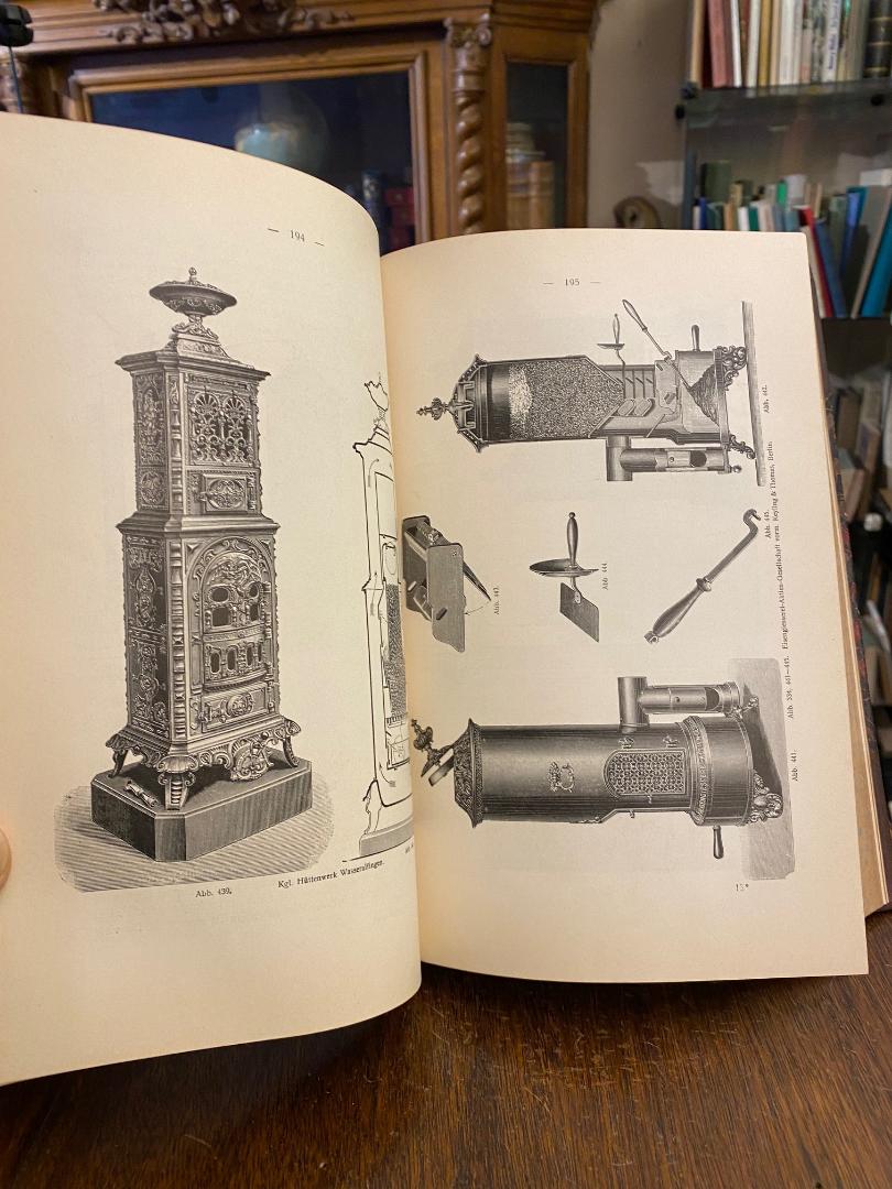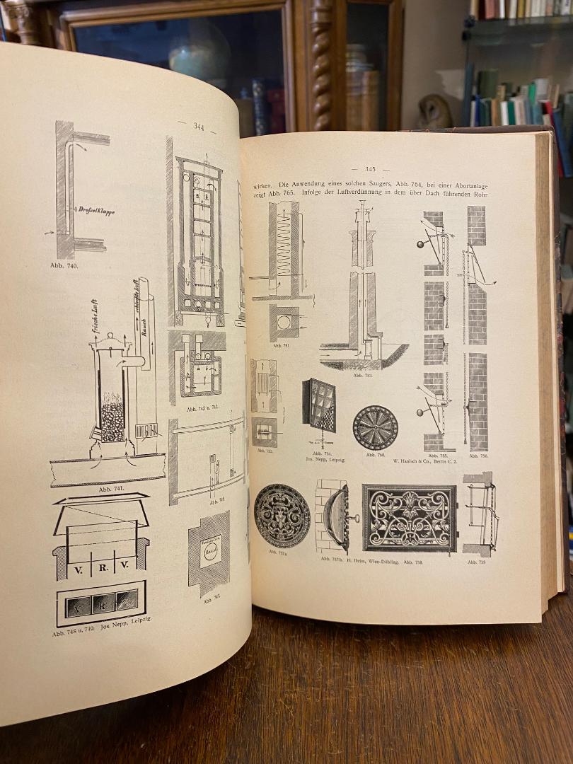 Jeep, Wilhelm / Wustandt, Ernst (Bearb): Jeep’s Feuerungsanlagen : Ein Hilfsbuch für Studierende und Baugewerkschüler, Architekten und Baugewerksmeister, Fabrikbesitzer und Gewerbetreibende, Bauunternehmen und Hausbesitzer, sowie für Hausmeister und Verwaltungsbeamte. In 2. Auflage völlig umgearbeitet von E. Wustandt, Herzoglicher Baugewerkschuldirektor zu Koburg. Leipzig, Carl Scholtze (W. Junghans) : Verlag für Architektur, Technik und Kunstgewerbe, 1905. 4° (27x17), VIII, 572 S., mit 1145 Abb., marmor OHldr mit Ldrecken, goldRPrägung, kaum gelesen, fest sauber und gepflegt,