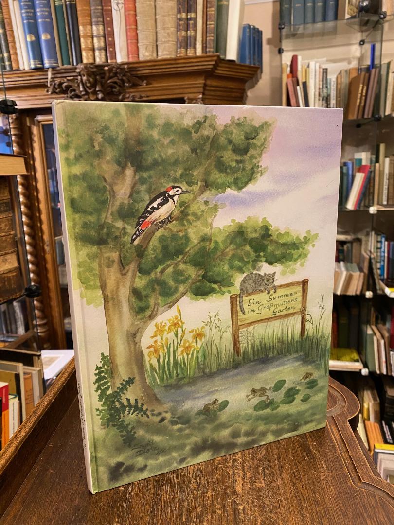 Dietz, Ingrid (Text/Ill): Ein Sommer in Großmutters Garten. Pfedelbach, Lessingstr. 9, Selbstverlag, 2001. 4° (32x24), [24] S., farb Illustrationen mit begleitendem handgeschriebenen Text, sowie 3 dokumentarischen Aufnahmen, beidseitig farb ill OPbd, ohne Gebrauchsspuren, offensichtlich ungelesen, auf Titelblatt von der Autorin SIGNIERT.–