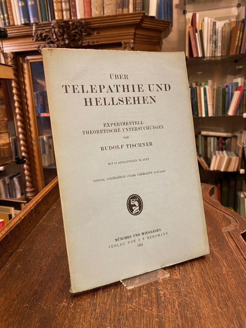 Tischner, Rudolf: Über Telepathie und Hellsehen : Experimentell-theoretische Untersuchungen. 2., verbesserte, stark vermehrte Aufl., München und Wiesbaden, Verlag von J.F. Bermann, 1921. 4° (26x17), 4 Bl., 122 S., 1 Bl., mit 19 Abb. im Text, OKart (Brosch), etwas gebräunt, fest sauber und gepflegt, [= Grenzfragen des Nerven- und Seelenlebens; 106 : herausgegeben von L. Loewenfeld und H. Kurella],